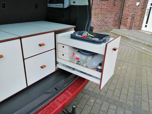 In unserer Tischlerei werden die Heckauszüge und Camper-Module in limitierten Auflagen gefertigt.